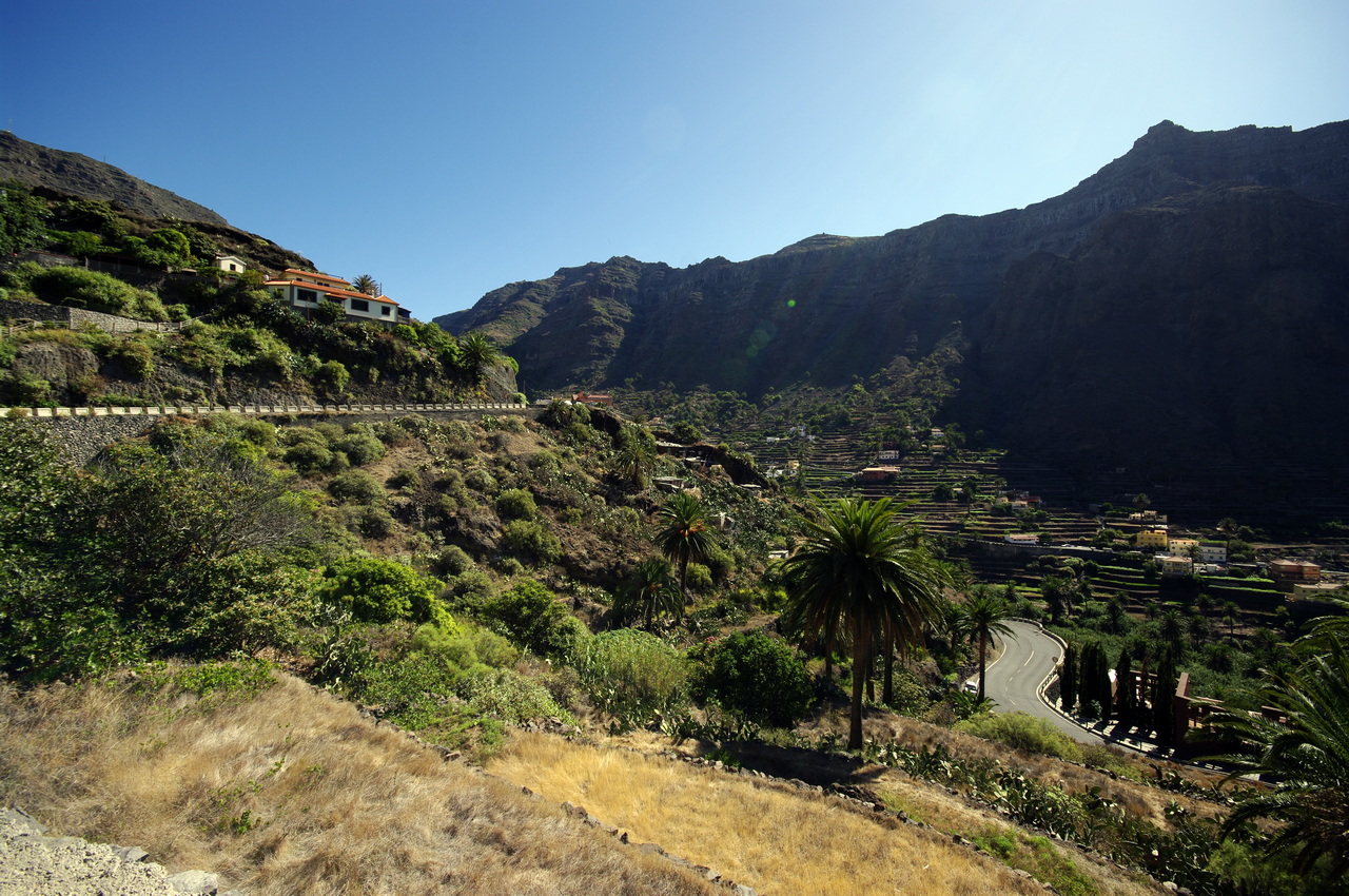La Gomera ist die zweitkleinste Insel der sieben Hauptinseln der Kanaren und hat nur etwas mehr als 22.000 Bewohner und ist vulkanischen Ursprungs. Man kann die Insel in zwei Klimazonen aufteilen. Zum einen in die trockene Südhälfte und zum anderen in die fruchtbare Nordhälfte. Diese wird von den Passatwinden mit feuchter Luft versorgt. Die Bewohner bauen hier Wein an, aber auch Tomaten, Bananen und Kartoffeln.