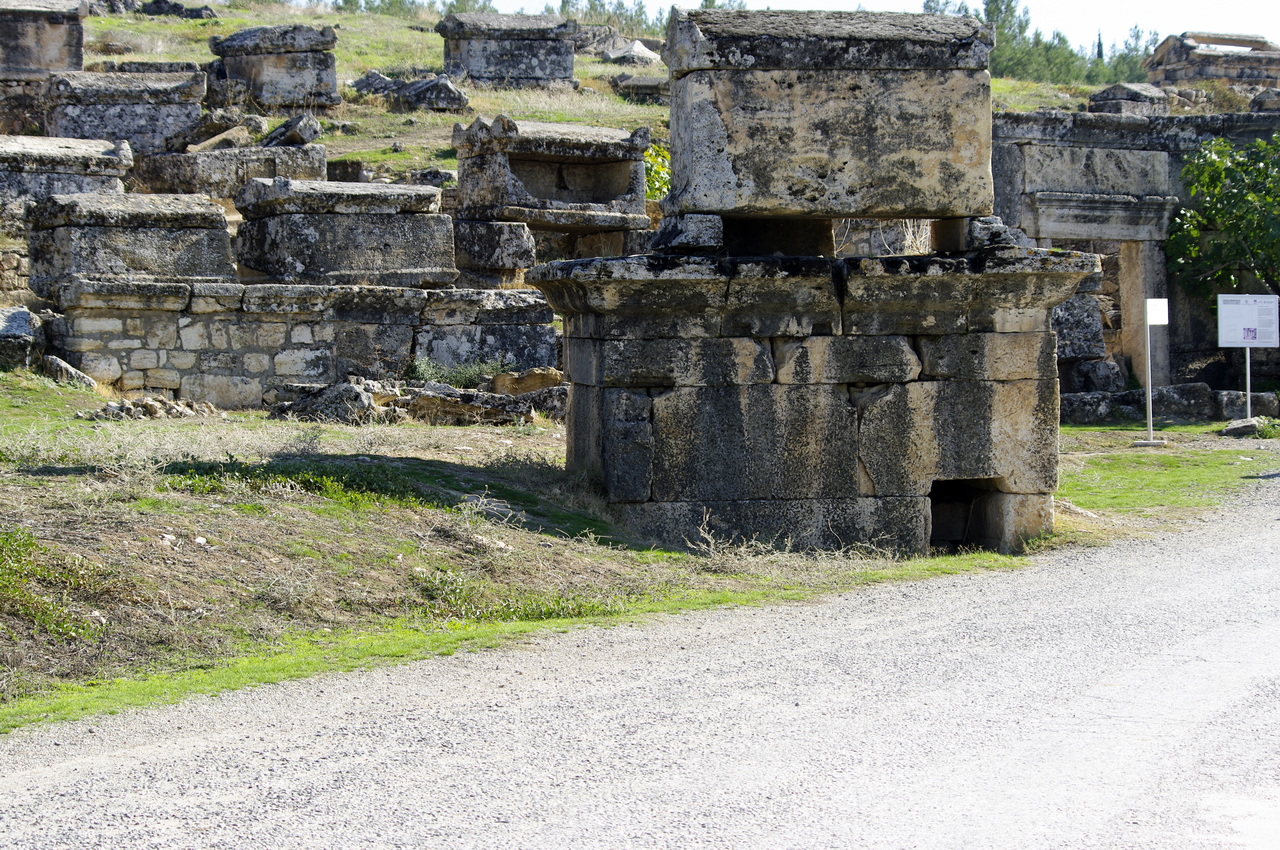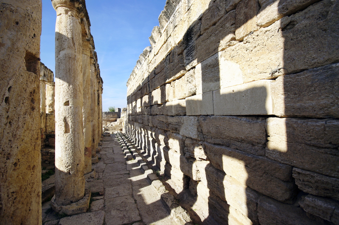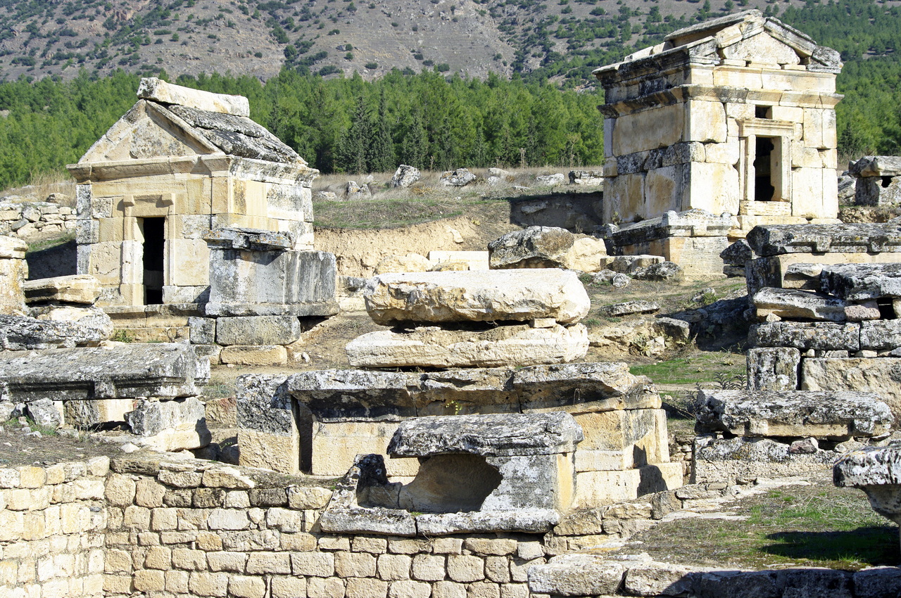 Direkt neben den Sinterterrassen findet man die Ruinen der antiken römischen Bäderstadt Hierapolis. Hier sind uralte Gräber, hausförmige Sarkophage, Tempel und Überbleibsel von Theatern zu sehen die aus der Zeit um 190 v. Chr. entstanden sind.